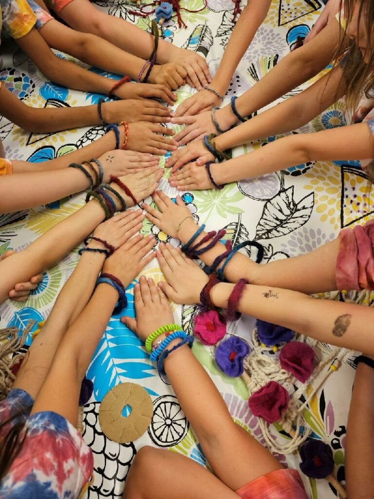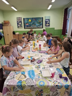 Július 07-11 között került megrendezésre Szigetszentmiklóson a Bíró Lajos Általános iskolában tábori programunk, amin közel húsz, 7-9 éves gyermek vett részt. Makramé csomózással baglyot készítettek, de volt, aki nemez virággal és hármasfonással faliképet alkotott. Nemez és körmönfonással karkötők készültek. A kis csapat többféle kézműves tevékenységgel, sportos csapatjátékkal, versenyekkel, tánccal kovácsolódott össze. A tábor zárásaként a batikolt pólóban egy betanított tánc műsort adtak elő a szülőknek.