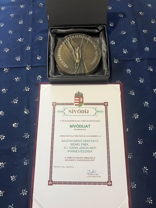 Sárdi János, kékfestő népi iparművész Mohácson átvette a Pécs-Baranyai Kulturális Szövetség Nívódíját