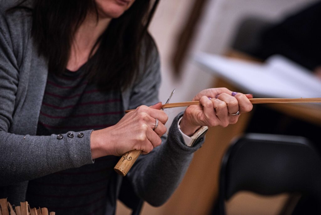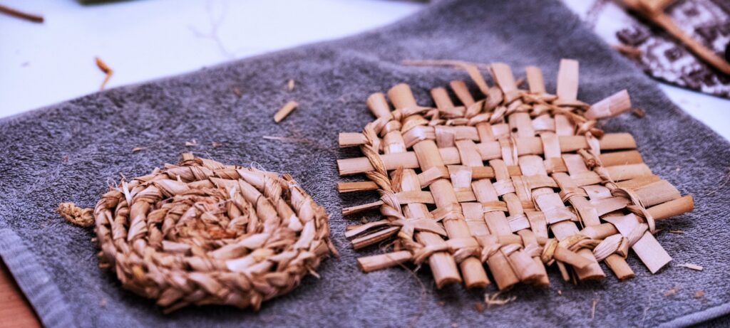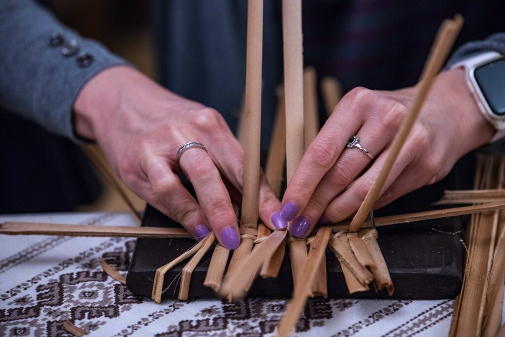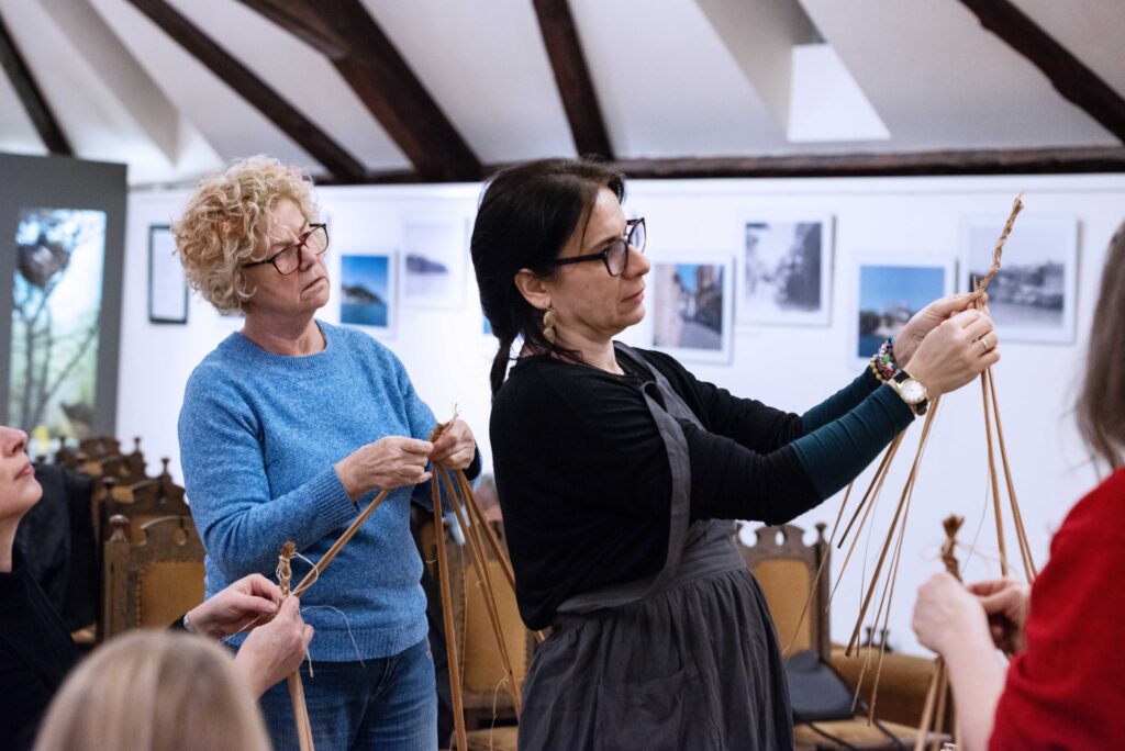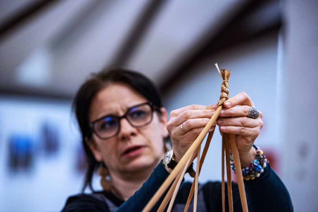 A mostani műhelyben gyékény poháralátétet készíthettek a résztvevők különböző technikákkal, Harthné Virág Kata népi iparművész útmutatásával.