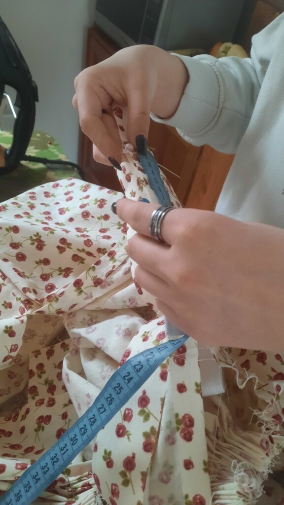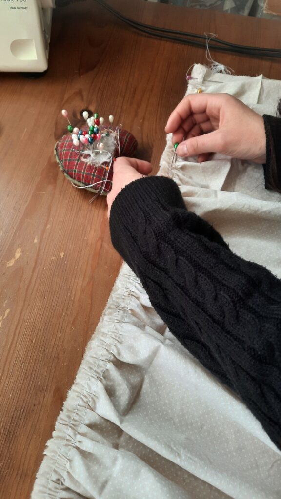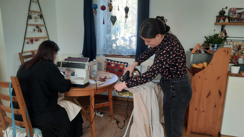 3. foglalkozás: Húzott parasztszoknya készítésének folytatása: dìszítések átbeszélése, elhelyezése, kiválasztásának szempontjai. Pié készítése szoknyába. A szoknya befejezése.