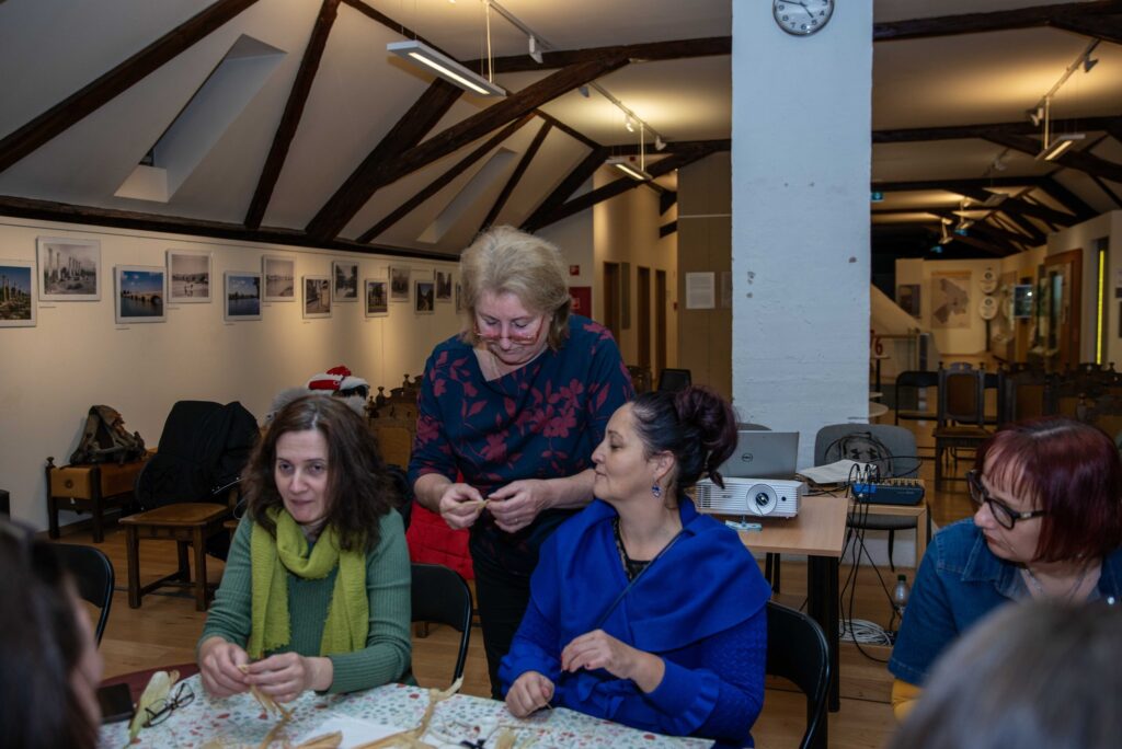 Karácsony közeledtével az Adventi időszakban mi más is készülhetett volna, mint karácsonyfadísz méghozzá csuhéból Markó Julika és Solymosi Ica útmutatásával a Magyar Földrajzi Múzeumban. Igazán méltó befejezése volt az idei évnek, igazi ünnepi hangulatot varázsolt a díszek készítése, az asszonyok pedig remekeltek.